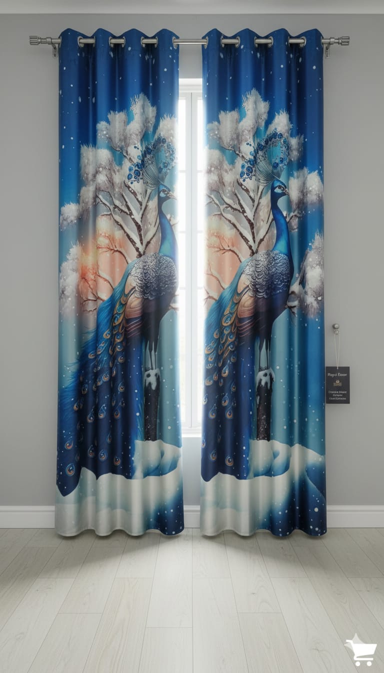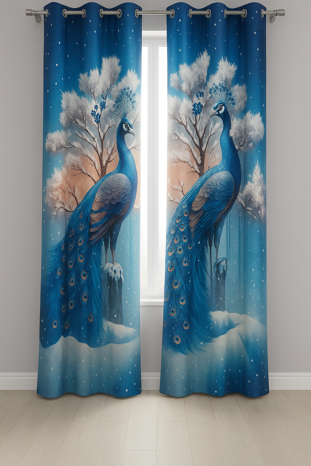 Apne room ko ek royal aur classy look dene ke liye yeh 3D Peacock snow Curtain best choice hai.